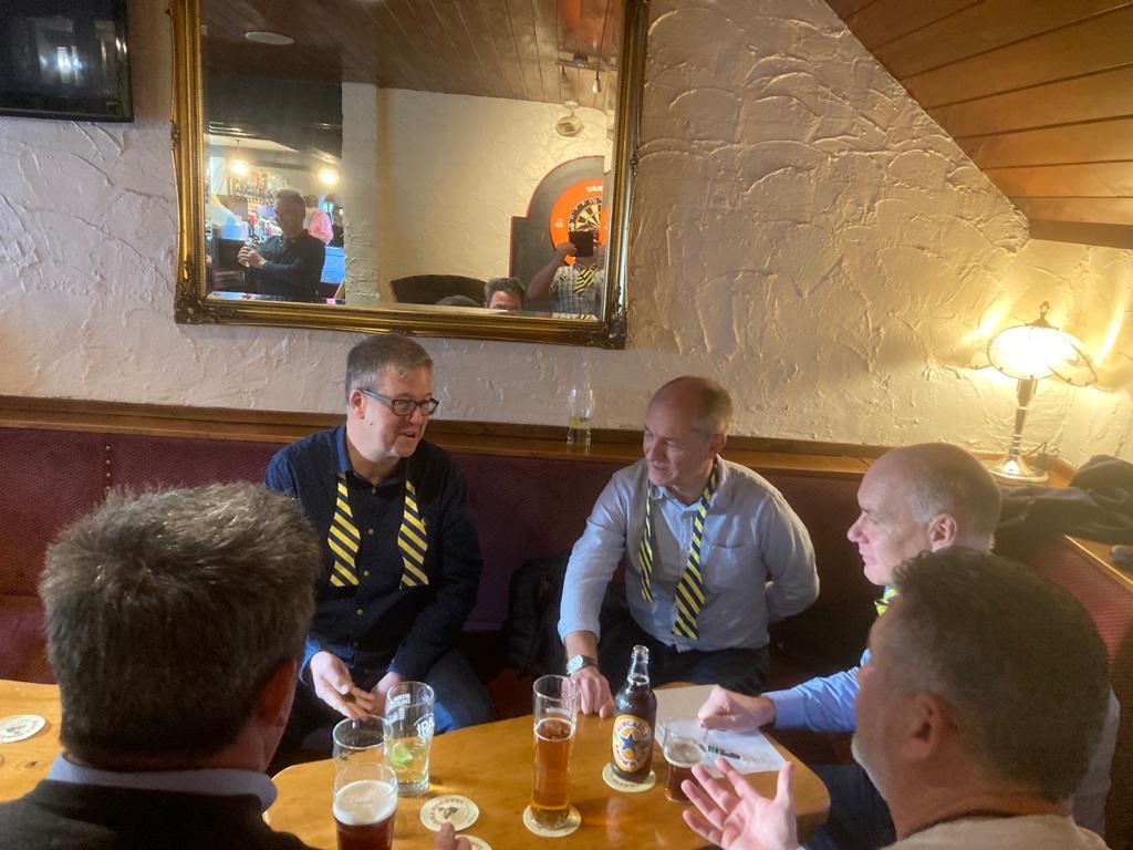 The essential pre game preparation began : Drinks ordered, Table Etiquette under strict observance, Chair of Sippers delegated , traditional coins in place, scorers briefed and steely determination etched on faces (some are uncannily permanent) …. and finally the call….